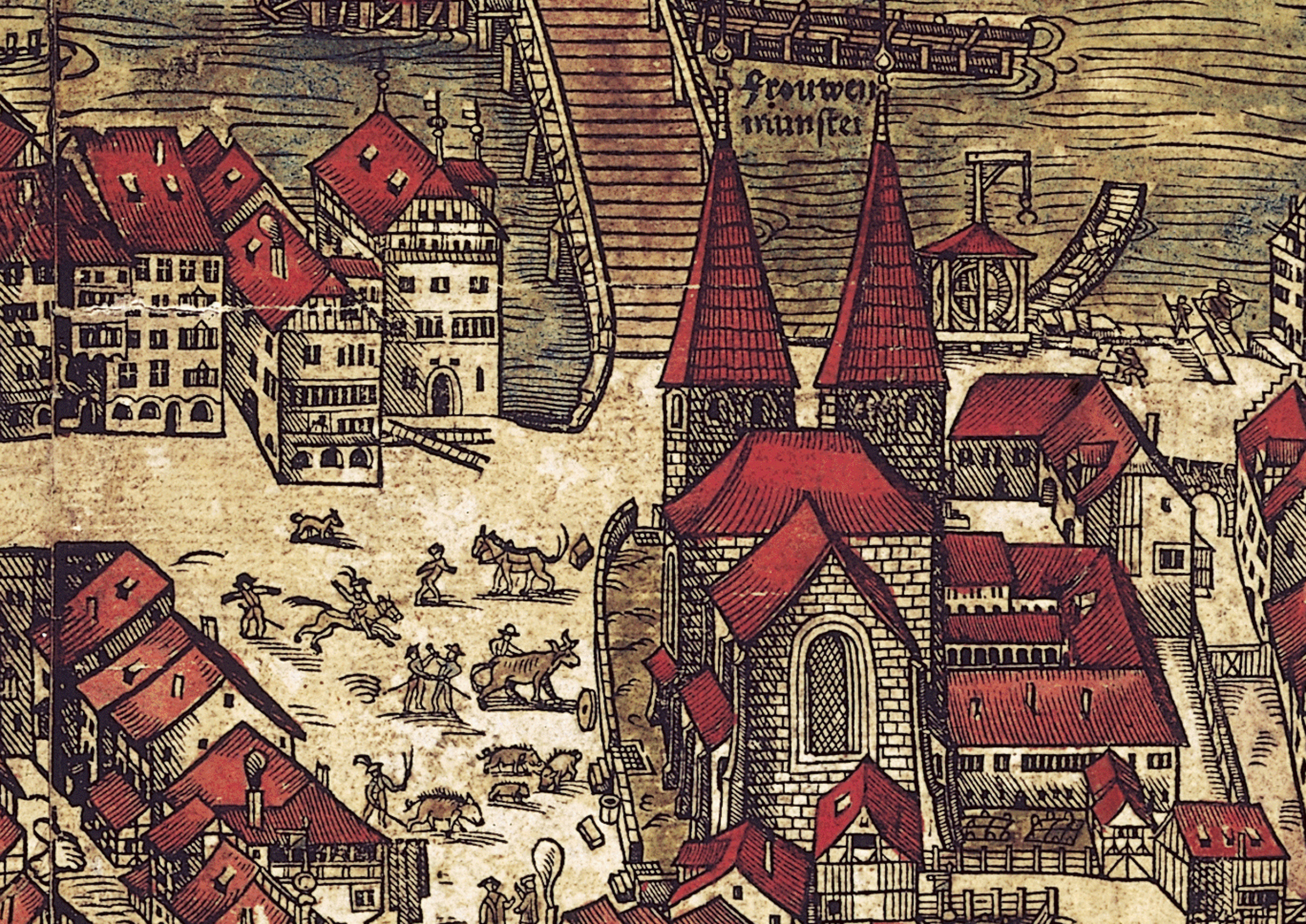 1336 beginnt eine neue Zeit: Zürich ist Zunftstadt geworden. Für die damaligen beiden Textilzünfte kamen bald nach dem Tod von Bürgermeister Brun schwere Zeiten. Das durch den Bund mit den Eidgenossen gespannte Verhältnis zu Österreich hat ihren bisherigen, traditionellen Abnehmerkreis verkleinert, ohne beim neuen Verbündeten neue, gleichwertige Märkte zu erschliessen. Der alte Zürichkrieg, der vierzehn Jahre dauerte, brachte die Wirtschaft der Stadt in katastrophale Schwierigkeiten. Die gesamte Ausfuhr von Gütern erlahmte. So erstaunt es kaum, dass die Zahl der Wollen- und Leinenweber noch stärker zurückging als die Gesamtbevölkerung, welche sich von 1350 bis 1460 von 7000 auf 5000 Einwohner reduzierte.