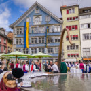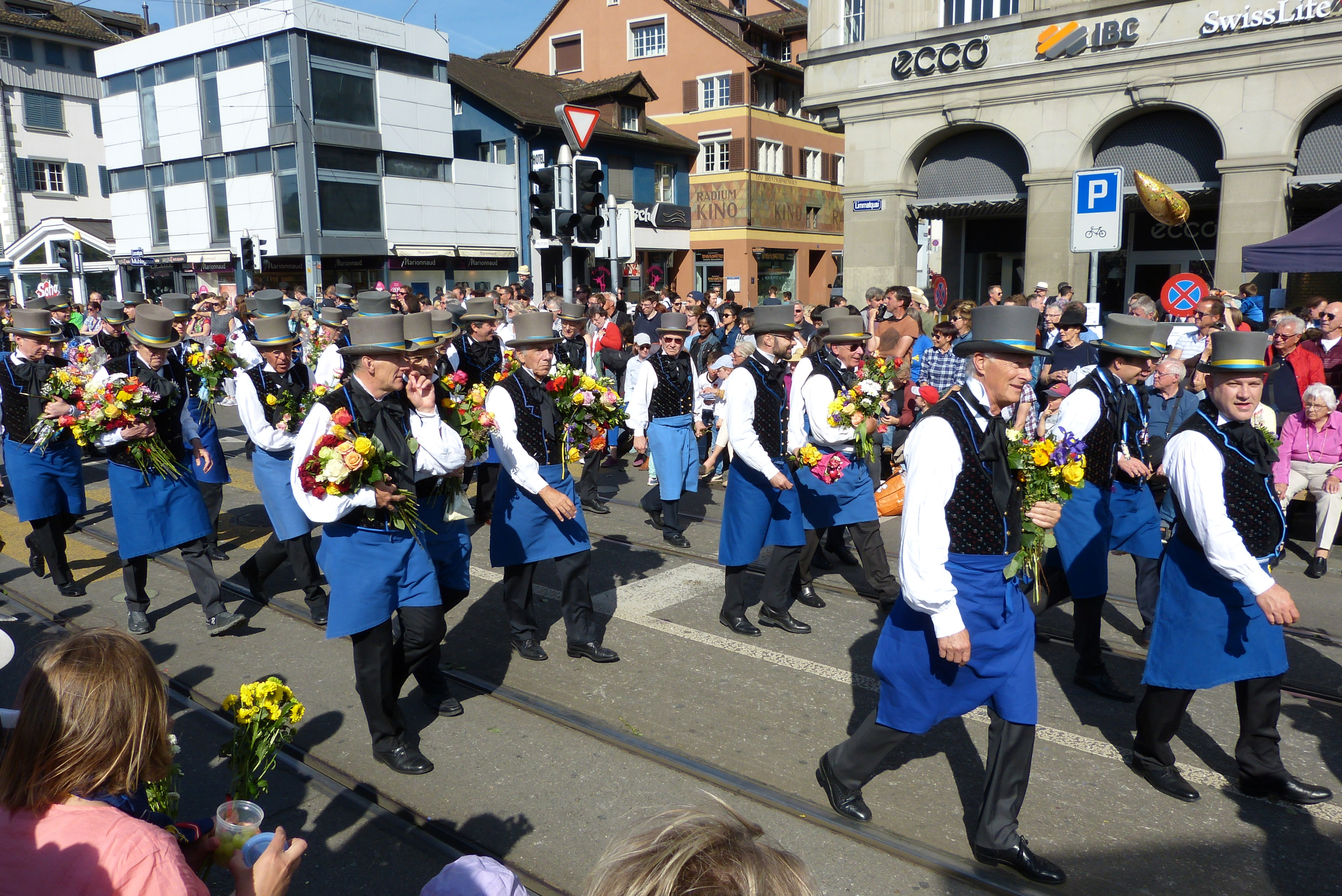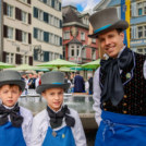 Kinder und Enkelkinder von Zünftern nehmen von Kindsbeinen an am Umzug teil. Sie werden von Zünftersfrauen und Zünftern begleitet – und bei Bedarf getragen.