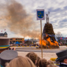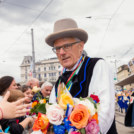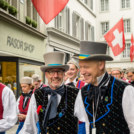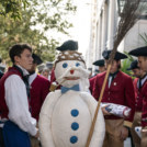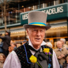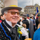 Der graue Zylinder in Grossformat wird als Zeichen für das Handwerk der Hutmacher von Gesellen mitgetragen.